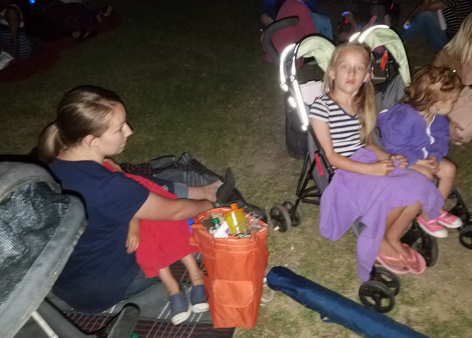 I love this picture, which Alex took about 15 minutes before fireworks. Carter is asleep, Hunter (not pictured) is asleep, and Olivia definitely should be, she has reached zombie mode :).